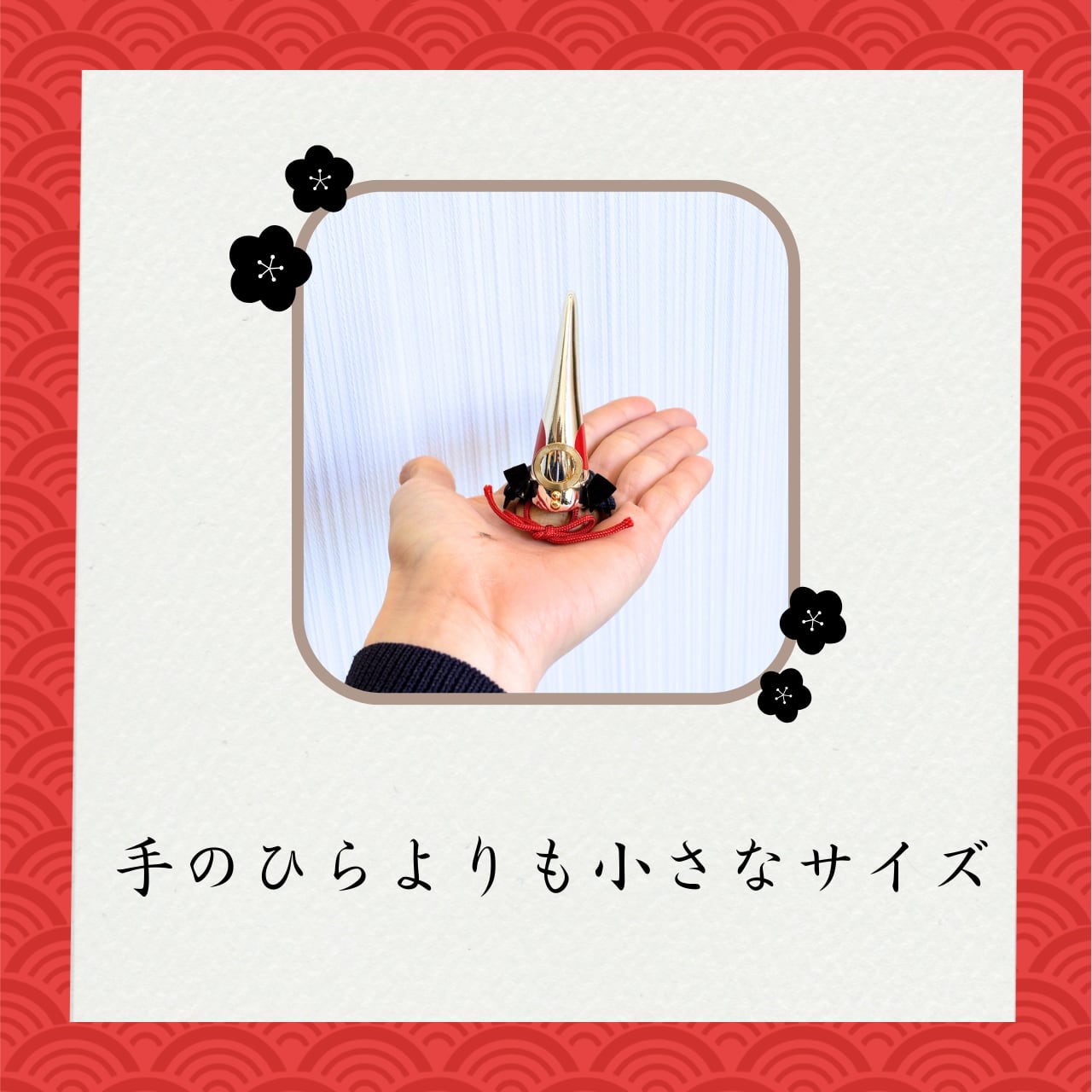 手のひらサイズに仕立てた小さな兜飾りです。